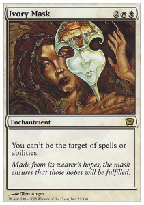 The report from Captain Black, a very reliable spoiler of upcoming sets, is that the yet to be revealed White Leyline is Ivory Mask as an enchantment.