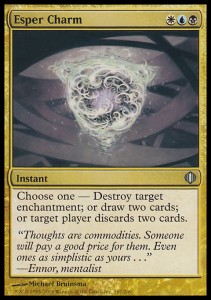 Cedric Phillps drew a lot of ire for his play against an opponent (Premium SCG Required) at the Columbus Midwest Masters. To recap, his opponent played an Esper Charm, targeting himself. Cedric confirmed, "you are targeting yourself." Opponent confirmed. Cedric called a judge, and had the opponent confirm to the judge. Opponent confirmed again, he was targeting himself with Esper Charm. The opponent was then forced to discard two cards, since that is the only mode of Esper Charm that targets a player.