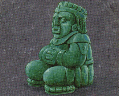 The first painting the old man brings you to is quite simple. The frame is made of wood, expensive, and well made, but it’s nothing out of the ordinary. The subject is a lone statue in a sitting position. A name below reads simply, “Jade Statue.”