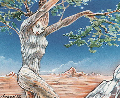 Shanodin Dryads are infamous for their secrecy. Very few beings have ever seen one, and even fewer have done so without a dryad’s knowledge. Their forest, Shanodin, lies on an island at the southeastern edge of the archipelago known as The Domains. It is not a friendly forest, and many have learned never to set foot within it without reason. What makes this land so significant when compared to other forested areas of Dominaria is the actual dryads. In no other place within the multiverse have I found such a concentration of dryads.