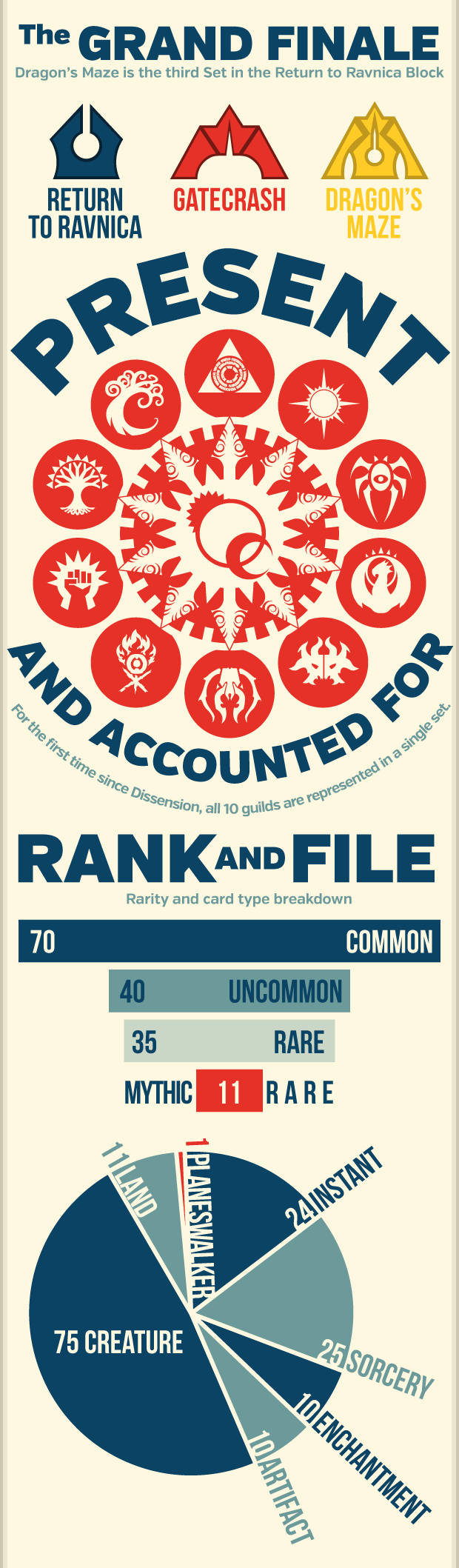 Main » Articles » Dragon's Maze InfographicDragon's Maze Infographic By James ArnoldPosted on May 7, 2013 Reddit TAGS articles, analysis, other, design, return to ravnica, gatecrash, dragon's maze, infographic, james arnold