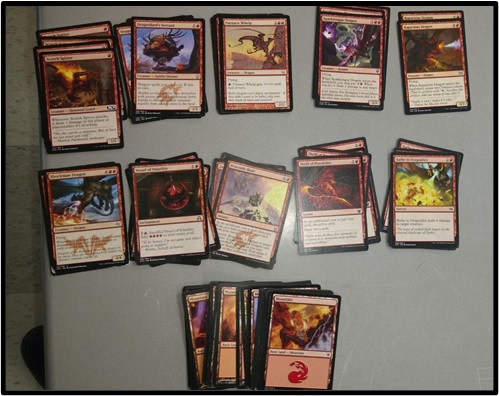 After watching Octavian play with me during lunch, Paul decided he wanted in on the action, too. He requested a dragon deck, and I had previously found four copies of Dragonlord's Servant, so this was a simple request to fulfill.