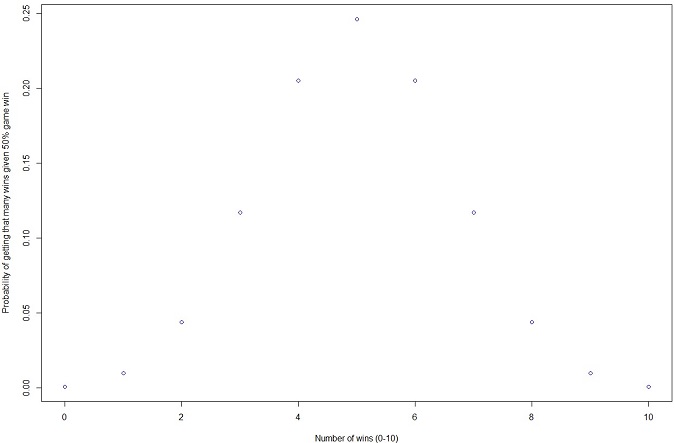 | Number of wins out of 10 | 0 | 1 | 2 | 3 | 4 | 5 | 6 | 7 | 8 | 9 | 10 |