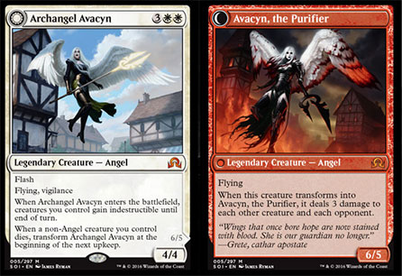 Isn’t that a thing of beauty? That’s an Angel with two modes, both of them pretty killer. How do we abuse this power? How do we use this to our advantage? Which side is better? Why is Avacyn attacking the literal unluckiest people on the entire planet? Let’s review: The people of Innistrad live in a Middle Ages–type plane of existence where the humans are constantly being attacked by werewolves and vampires. It’s like Twilight, only they don’t have toilets that flush. When they’re not being bitten by one of the two kinds of monsters that turn you into one of them, making the rest of your life an existential nightmare, you have to contend with your angelic protector torching your terrible thatched-roof cottage with no Wi-Fi and then you get to ponder where you’re going to take shelter from Team Jacob for like four seconds before Emrakul visits your plane and you go literally insane staring at the non-Euclidian face of your own inescapable Eldritch nightmare. Compare that to Ravnica, where, “Aww shucks, sometimes those scwewy Dimir send a spy to wook at some of my documents. Waaa.” I guess what I’m saying is, Innistrad is a bad place to visit and a terrible place to live—I don’t care how good turning into a werewolf would make me at crossfit.