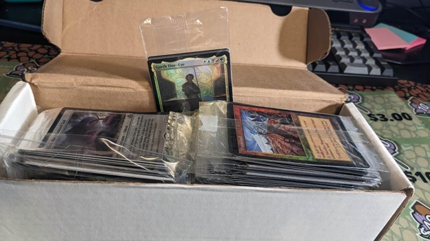 Douglas Johnson, the convention buyer and mad scientist who brought you the unsleeved Gonti deck that you should for sure wash your hands after touching, did it again. Buying for a living can get tedious and repetitive, so collecting becomes necessary in the fight to maintain sanity. Besides heavily damaged cards, he also collects pristine, in the package promo cards. This is his deck box - like it? I liked watching him play someone else's Emrakul, the Promised End, copy the Mindslaver effect with a Lithoform Engine and moonwalk out of the convention center after taking both of their turns and killing them. Stealing their Emrakul is, well... now I can't say it's "cool" can I? It's good, but it could be gooder - stealing their Emrakul is what I would normally do, but wouldn't it be better to double the stuff, too? It occurred to me - a lot of Sagas and Planeswalkers and Artifacts and Enchantments and other stuff I like steal their spells - what if I could double other stuff?