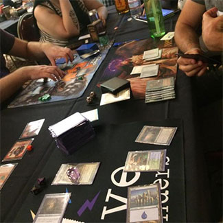 Thursday saw me spend some time on site and grab a few games of Commander at a table next to a group that included Gathering Magic founder Trick Jarrett (@trickmtg), Community Manager Heather Lafferty (@revisedangel), and Gathering Magic article taskmaster Adam Styborksi (@the_stybs). People came and went from the pod, but MTG Price writer and Brainstorm Brewery team member Douglas Johnson stuck around the whole time.