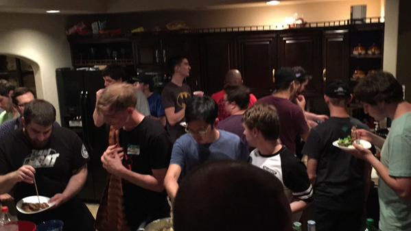 Staying in a hotel is for suckers, especially when you can turn an empty kitchen and living room into a real event center. Wednesday night was the first opportunity.