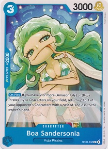 Looking at the previous lists, I decided to create one myself that focuses on cards I have access to and plays into a few of the core functionalities of the main list. Gloriosa (Grandma Nyon) can search out our Snake Dances. We also added Boa Sandersonia, which makes an appearance in this list, but primarily as a searchable counter with Grandma Nyon. We're keeping Mr.1 in this build even though he's technically Impel Down. The value he can give us insane. Here's what a sample list would look like: