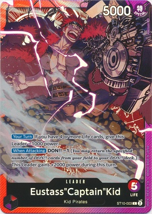 One of the most powerful leaders ever printed entered the game with ST-10: RP Law. He was so powerful that he had to be banned out of the game to ensure that he didn't just abuse everyone else. While Red/Purple Luffy sees some play these days, the third captain, Red/Purple Kid seems to be the least appreciated leader. And it's for a decent reason too.
