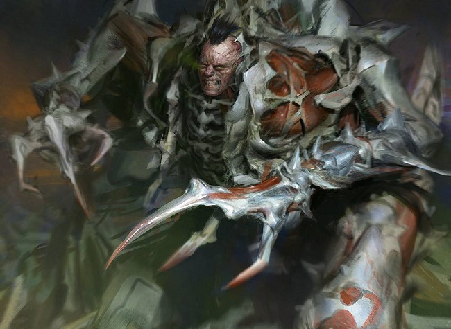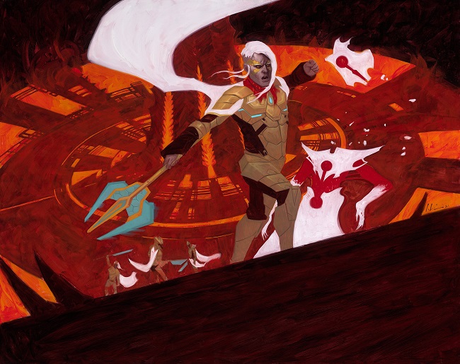 Elesh Norn is the face character of Phyrexia: All Will Be One, the final praetor to be printed in the years-long Phyrexia arc leading up to March of the Machine. Amusingly, before her appearance in last year's A Garden of Flesh, Elesh Norn hadn't actually appeared in a story! She'd been named once or twice before, but never appeared in the flesh, so to speak. Norn is the leader of the 'religious' faction of New Phyrexia, the Machine Orthodoxy. Her vision for the multiverse is that all will be made as one, although the Machine Orthodoxy has various interpretations of that. Her aversion of flesh comes from the idea that skin is a barrier to unity. Gross!