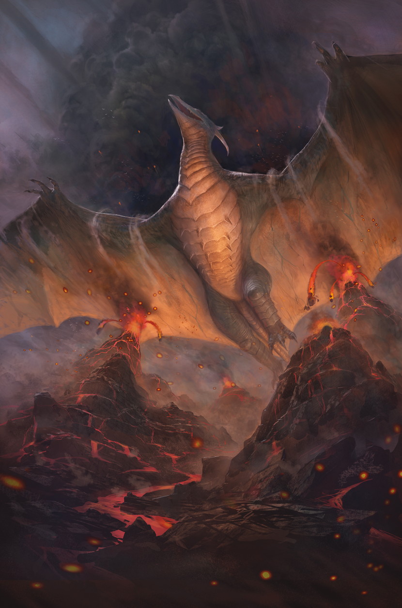 Rodan's origin usually involves being dormant in a volcano of some kind. In Godzilla: King of the Monsters, they took this one step further and made him almost volcanic himself. Rodan's design has been pretty consistent, being the monster most closely based on a real dinosaur. This artwork, like most in the Godzilla Series, is clearly based on the Hesei version.