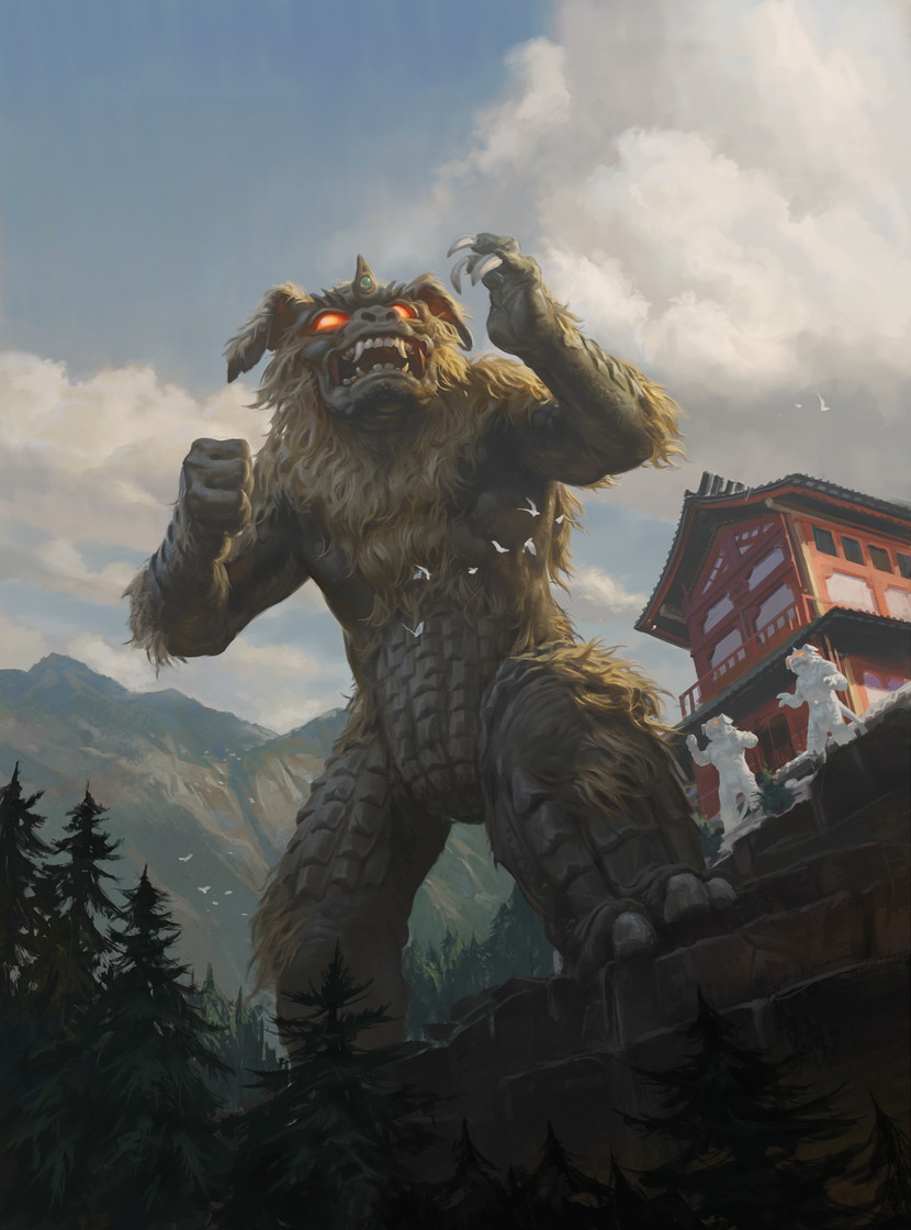 King Caesar is a minor Godzilla monster, originally appearing as a guardian deity awakened to aid Godzilla against Mechagodzilla (the original one). The version of King Caesar we see on the card here is the updated design resembling the one from Godzilla: Final Wars, where King Caesar is largely relegated to a montage of monsters attacking the globe. King Caesar is a monster based on stone lion statues called Shisa from Okinawa, and has an entirely too long song dedicated to waking him up.