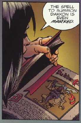 The mad monk helps Carth escape, leading him to a spellbook that teleports him to the dead city of Sedouris on Corondor. Hiding away in the city, Carth summons Dakkon, who arrives in a fury at being summoned and bound by the Amulet of Tifu. Forced into Carth's service, Carth explains that Dihada is there on Dominaria, and that together they may be able to defeat her. The spell doesn't allow Dakkon to travel far from Carth, and if Carth dies, so too will Dakkon. Begrudgingly, Dakkon follows the young man's lead.