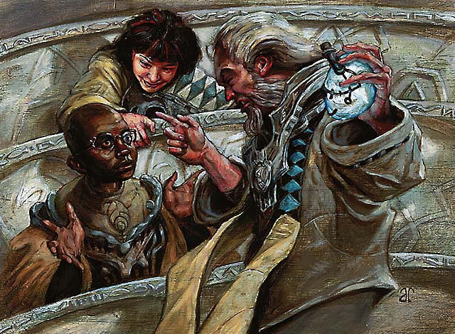 Young Teferi was a rascal. Shown here being admonished by [Barrin, Master Wizard].