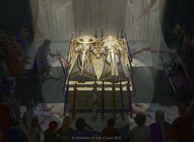 We get surprisingly little on Innistrad after Gisa and Geralf of all people helped save the day. Markov Baron shows life goes on for the vampires. Sigarda, Font of Blessings's role as the protector of humanity has probably largely been cemented at this point, I would be surprised if the Avacynian holdouts didn't focus on Sigarda after this.