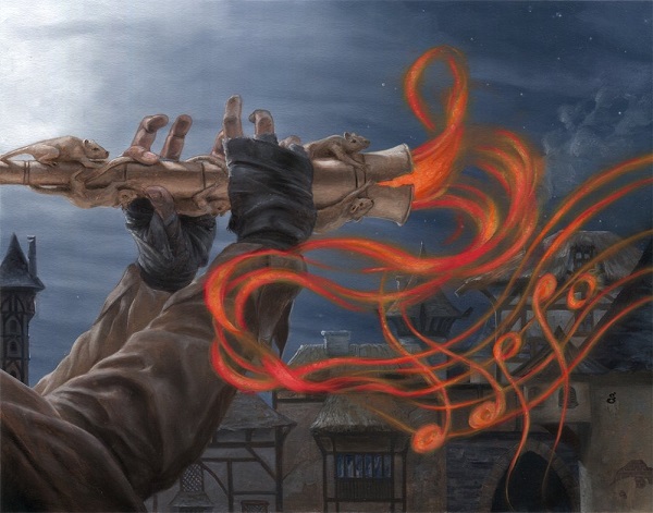 Our Black-Red mini-arc is a riff on the Pied Piper story, but in reverse. Rather than luring away the rats infesting Edgewall, Totentanz, Swarm Piper is instead empowering them. Gifted a magic flute by Lord Skitter, Sewer King in Lord Skitter's Blessing, the Song of Totentanz summons the rats of the city to cause havoc: