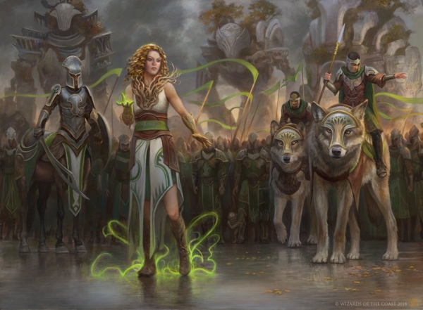 Ledev Guardian and Ledev Champion - Ledev are the Selesnyan's highway patrol. Mounted guardians of Ravnica's roadways charged with keeping them safe for travellers. Tolsimir Wolfblood from the original Ravnica: City of Guilds is a Ledev.