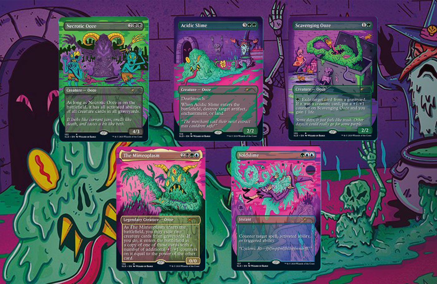 I... l have no idea what this Secret Lair is about. It features the work of Dakota Cates (aka Wizard of the Barge), an artist known for slimy, gross-but-cartoony parodies.