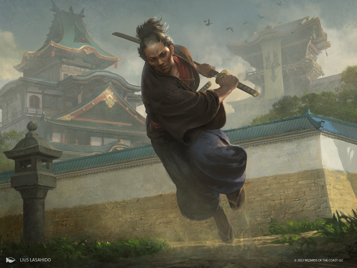 Although I've gone over the story of Toshiro Umezwa in Preparing for Kamigawa: Neon Dynasty, it's worth revisiting who this character is. Together with Hidetsugu, Devouring Chaos, he founded the Hyozan Reckoners (mostly to save his own skin from being killed by the ogre). Toshiro's story is twisty, as he tries to navigate his oaths to the Reckoners, to Michiko Konda, Truth Seeker, and to the Myojin of Night's Reach. He ultimately ends up pissing most people off by doing the right thing (despite himself) and as a punishment/reward, Night's Reach drops him off on Dominaria blinded.