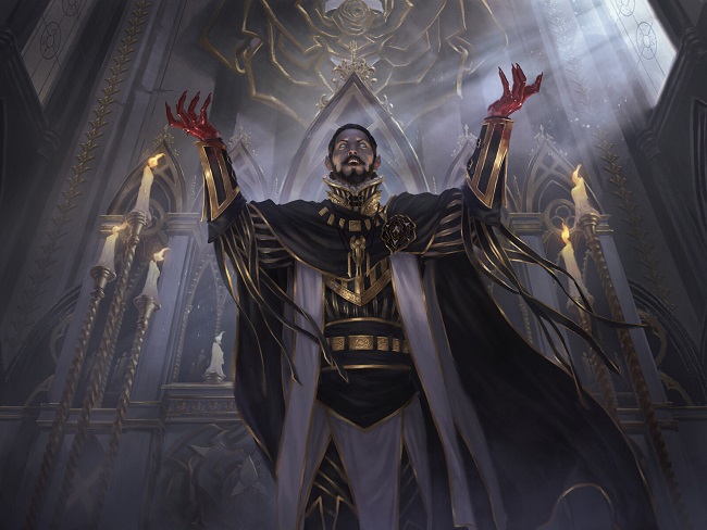 A fanatical priest of the Church of Dusk on Ixalan, Vito believes that salvation can only be found through the Immoral Sun. When the vampire saint Elenda returned with news of the Sun's disappearance and a message of humility, Vito overturned a massive carafe of blood onto the church's floor - a symbol of defiance against the living saint.