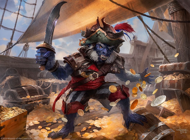Breeches was the fan-favorite gunner aboard Vraska's pirate ship, the Belligerent. A loyal, but loud, crewmate, his crew were enriched by Vraska's journey to Orazca to find the Immortal Sun. While they didn't succeed in acquiring the sun, their subsequent looting of the literal golden city left them suitably compensated. Breeches' best friend is the siren Malcolm, another member of Vraska's crew.