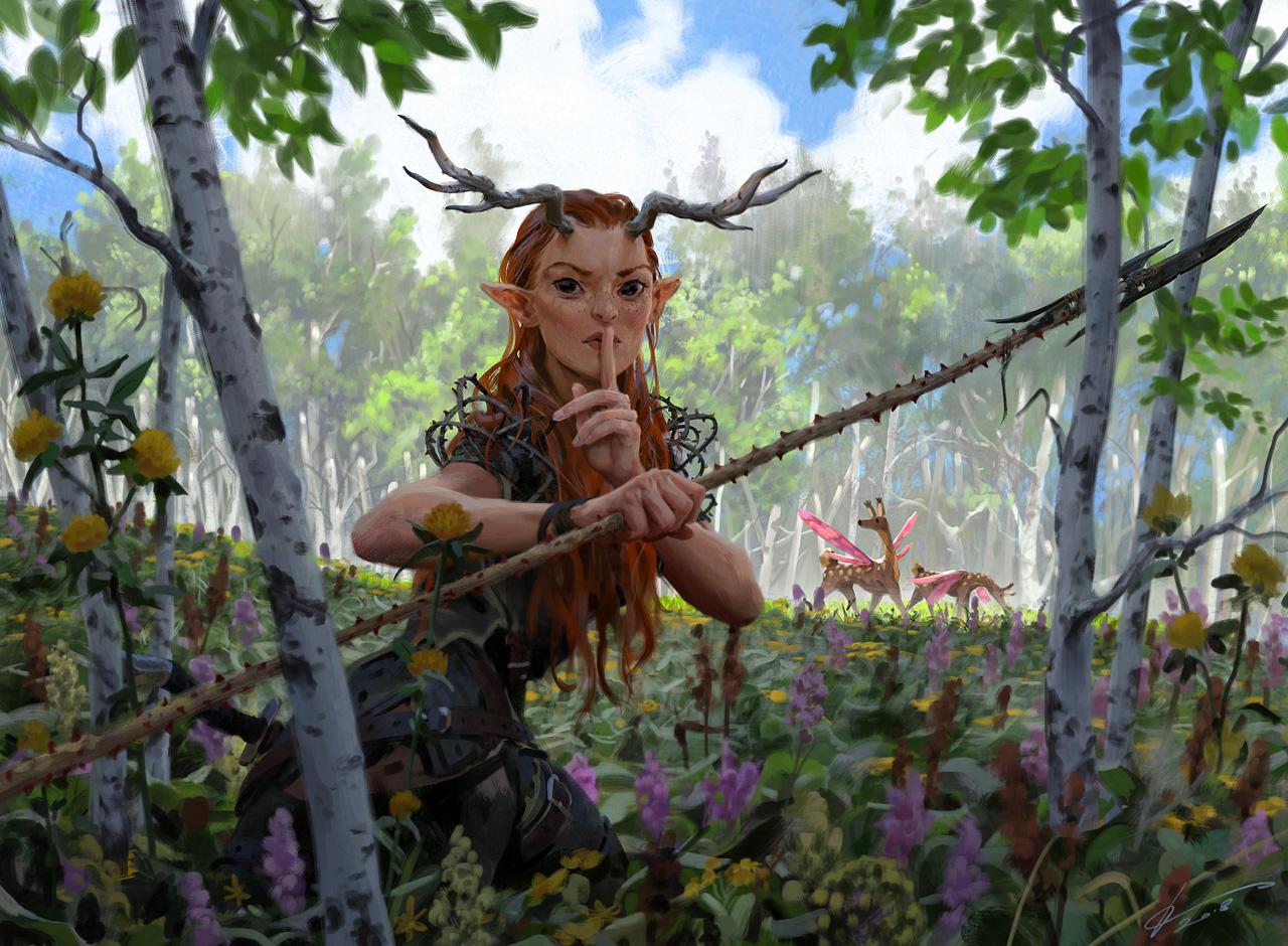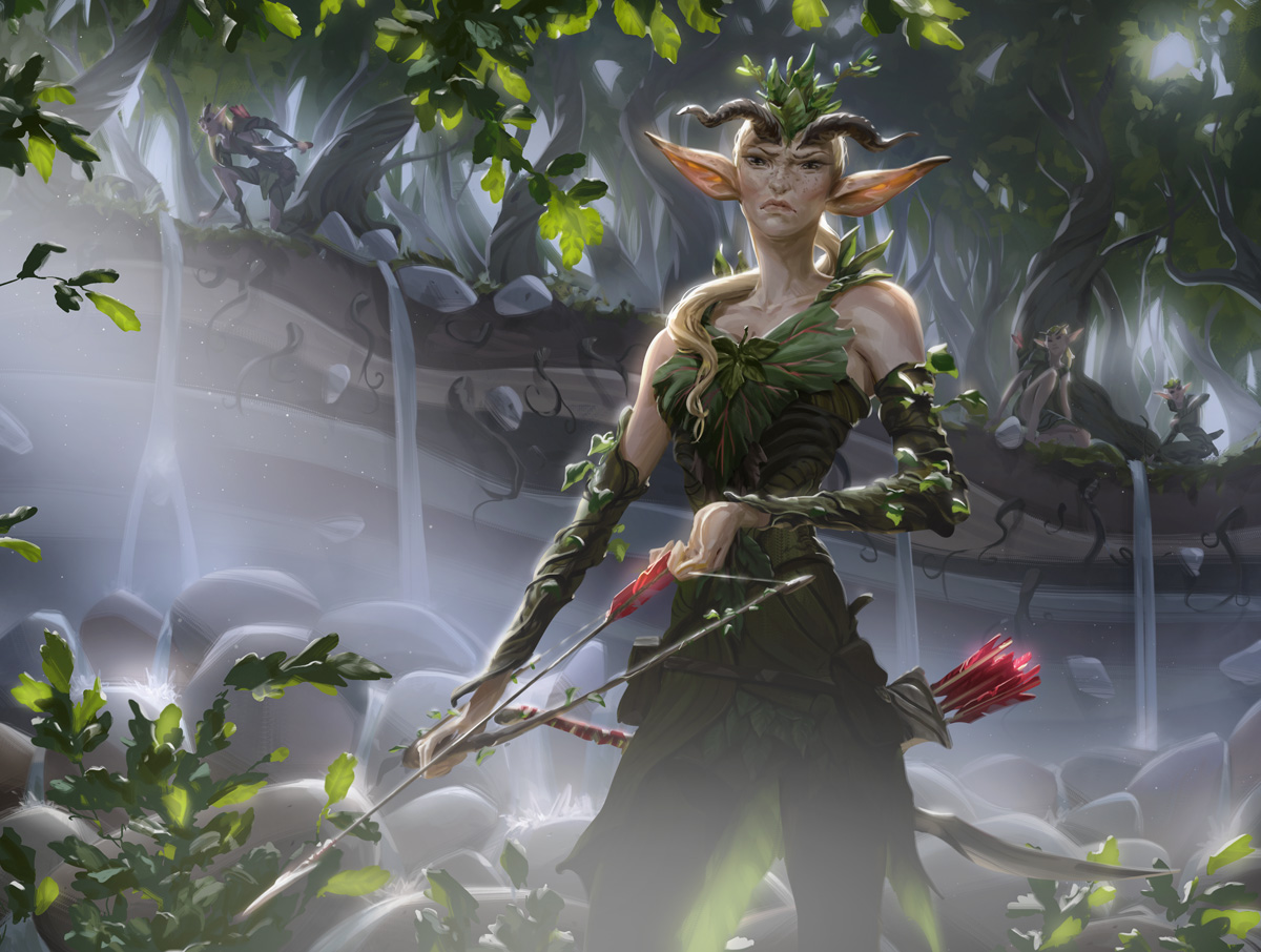 Dwynen is a daen, a leader of a Gilt-Lead Huntpack who encounters Nissa during her very brief trip to Lorwyn. Nissa witnesses her slaughter some eyeblights before leaving prior to the Great Aurora. Because that was forty years ago, and Lorwyn elves don't live beyond forty, we can presume that Dwynen is dead by now.