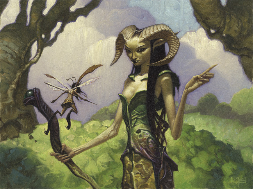 Wydwen is much too cool for you. Faeries travel in small groups called cliques - and for Wydwen, it's literally a popularity contest. She comes and goes as she desires, leaving snorted insults in her wake, and doesn't give the time of day to anybody - creature or planeswalker - who she sees as beneath her.