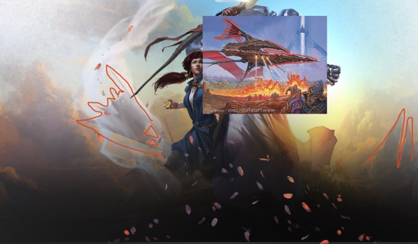 I wrote the art description for this gorgeous @VargasNi piece after I the play designers what usually comes Through the Breach. It's based on a great concept piece for EMN, I think by @jacobsontyler, that never made it onto a card. (Deleted old tweet to correct credit.) https://t.co/KUzQAfBEyG