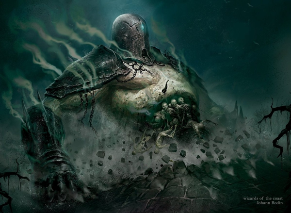 Wizards of the Coast knows what you're really casting with these spells. The Titan cycle from Magic 2011 have been a fun art reference for years, with previous versions of Animate Dead and Terminate both targeting a Sun Titan. This version of Reanimate is pretty clearly telling you what to bring back: Grave Titan. I love how often the titans appear in reprint art for sets like this!