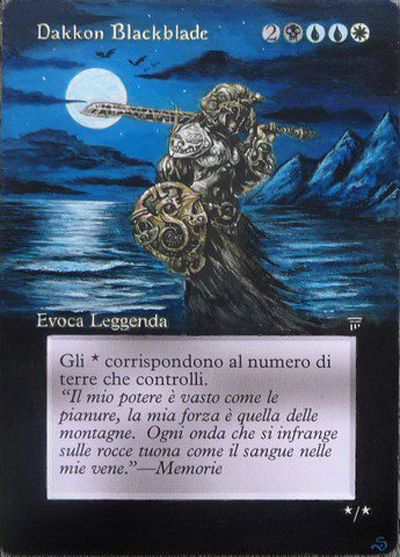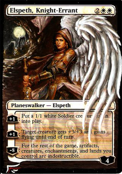 The next alter is from BlackWingStudios, which has been on my radar for quite some time, but due to the studio’s lack of posting in the Salvation forums, I always seemed to neglect including them. Many have done Elspeth in the past, and the card will be altered countless times in the future, but this one stands out to me. The night sky in the background is a really nice touch that—when coupled with her foreboding expression—makes it seem that wherever she’s headed, she’s aware she may not return. The wings are done very well, with the added shadow being a nice touch.
