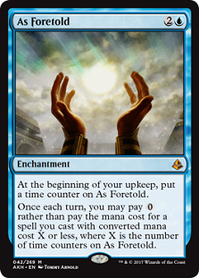 These three cards I also think are pretty over hyped and won’t perform well enough out of the gates to maintain their price tags. Harsh Mentor is a great card but it’s analogous to Eidolon of the Great Revel, which, despite being printed a few years ago, is only $12. There is no proof yet that Harsh Mentor will even perform as well as Eidolon and even if it does, it’s unlikely to spawn a huge amount of new demand. This card isn’t going to make waves in Standard yet and that’s where most of the demand for singles comes from. I’m going to guess you’ll likely to get it for $3-4 in a month if it doesn’t see extensive Standard play. Rhonas has a bit higher of a price tag compared to the other gods, probably due to it being the most likely to be played in Standard. At the moment, I don’t think there is enough reason and there won’t be enough demand to keep him over $10. Saheeli isn’t even $10 despite being a 4-of in a very popular deck in Standard. As Foretold has a lot of people excited about cheating out suspend cards faster but unless a deck materializes for it in Standard it will likely be relegated to near bulk mythic status soon.