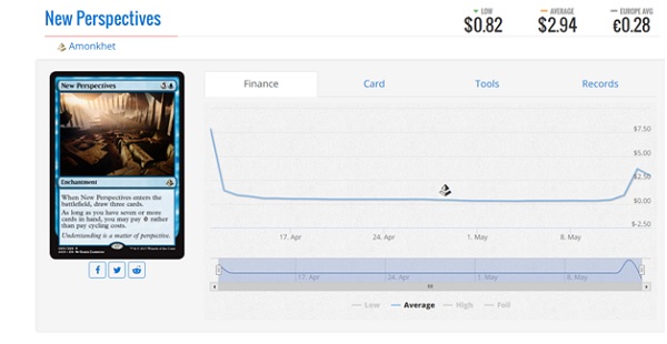 New Perspectives combo was featured in the first match of Constructed and the internet was basically bought out of the card. Personally, I think buying cards out on the weekend of the Pro Tour is foolish enough, but people didn’t even wait until the round was over because the deck lost. Turns out there were only 6 players playing the deck that weekend and none of them put up at least 6-4 record in constructed. If your local store is paying anything more than bulk rare price on this card I would be very happy to sell them this week. This deck might be fun to play at FNM but my perspective is it won’t rock the boat financially.