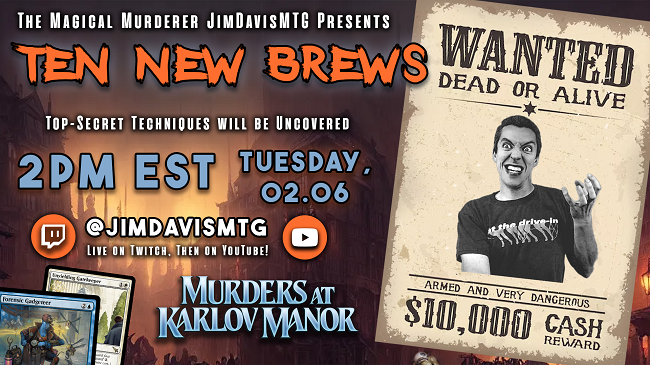 And of course Ten New Brews will follow! Unfortunately, Wizards of the Coast has cancelled Early Access this time around, so Ten New Brews will have to wait until the official release date, but it will still be awesome! That will also be live on Twitch and later on YouTube, and my article right here on CoolStuffInc.com will go over all ten decklists with my detailed thoughts on each!