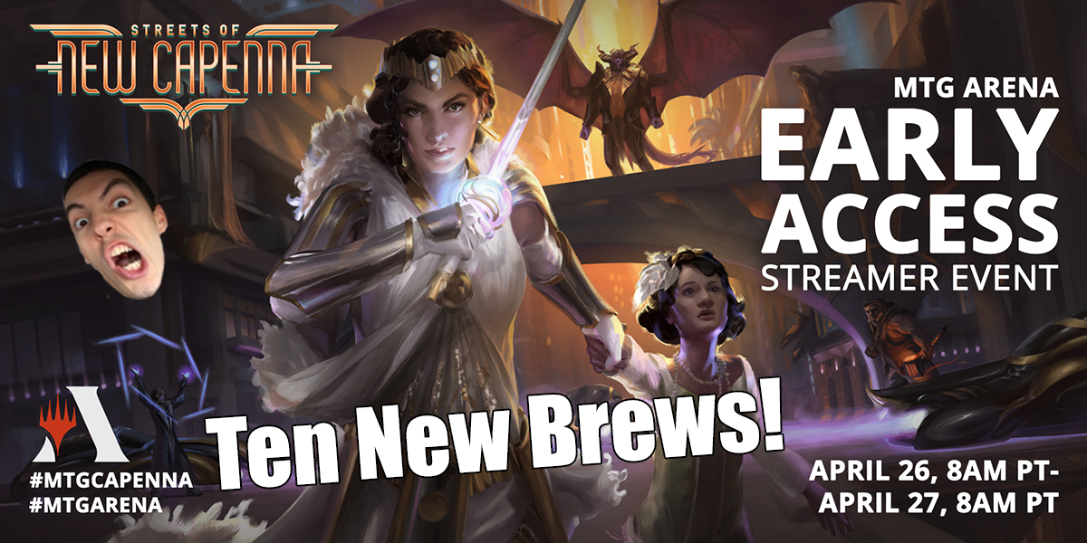 This event allows a large swath of content creators onto a special server one day before release with access to all the cards, allowing us to build tons of awesome new decks and showcase the set right before it goes live! This event is a blast because everyone involved is looking to try out new things and really put a spotlight on the new cards. This went away a few sets ago, and while Ten New Brews has still been a lot of fun, most MTG Arena players don't have all the new cards they need to build new decks on day one of a format, so we'd often end up just playing against all the top decks in the old format. The Early Access Event helps to make sure that we'll get to see the entire gauntlet of New Capenna and I'm sure it's going to be an awesome time!