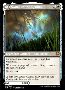 On the flip side is Sword of the Realms which is a bit more impressive. +2/+0 and vigilance is decent, and when you tack on the ability to make the creature essentially immortal then Sword of the Realms feels like it could be a serious weapon in matchups that revolve around attacking and blocking. The problem is that if your opponent isn't interested in blocking or letting you equip before they cast a removal spell things get a bit dicey.