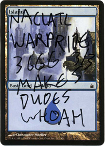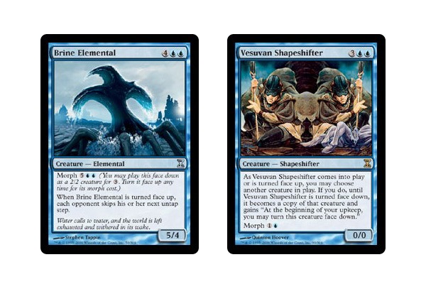 Pickles Lock (Brine Elemental and Vesuvan Shapeshifter) — The thing that we have to keep in mind about combos in Battle Box, is that the cards should "do something" on their own without the other combo piece. This is a great example, because even making your opponents skip one untap step is great. Also Vesuvan Shapeshifter is a decent clone on its own. I have an unhealthy love for this combo. It's part of one of my fondest Magic memories — meeting Brian David Marshall when I was very young in the game. He showed me his Simic Commander (then EDH) deck which was rocking this combo.