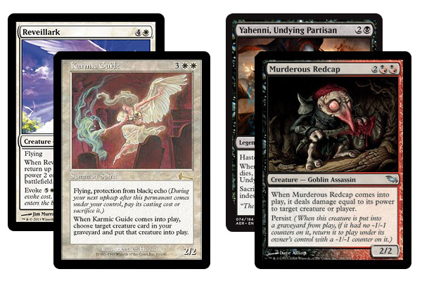 Reveillark Combo (Reveillark + Karmic Guide + Sacrifice Outlet + Combo Creature) The combo creature can include any of these fine targets; Acidic Slime (Blow up all lands), Peregrine Drake (Infinite Mana), Eternal Witness (Draw the Graveyard), Murderous Redcap (Kill everyone), Hornet Queen (ALL the tokens), Baleful Strix (Draw the Battle Box) and the list goes on. I'm also going to add a Body Double to the box to give this combo engine more life.