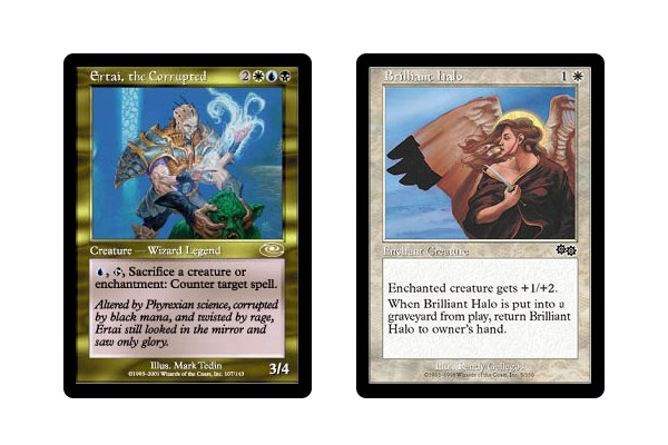 The total cost of all the “buff” Auras (over 25 cards) comes to around $13, which is only a dollar more that you’d pay for the worst sword (Sword of Body and Mind). I added other Enchantments, like Underground Connection (Underworld Connections) (instead of a card draw spell) to help support things like Ethereal Armor and Ancestral Mask. Making small changes to the box can lend a lot of support to specific archetypes without impacting the flow of play. For example, having Ertai, the Corrupted in the Commander pool is no accident. With over 8% of the box being enchantments, having access to a Commander like this can make drawing these enchantments even better. I also threw in a small Easter egg for Ertai in the form of Brilliant Halo. C-C-C-Combo! There’s also another small thing I added in the Aura department to help out top-end out, but I’ll talk about this bellow.