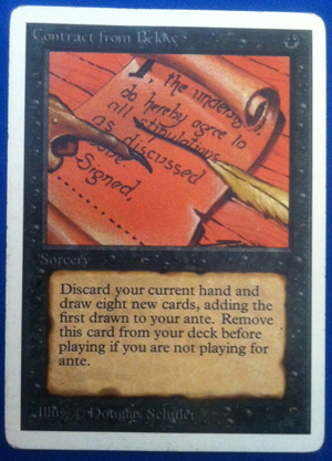 Is this card just completely broken in this crazy format? “Okay, I’ll draw seven, then add a card to the ante that doesn’t matter because I’m gonna win because I just drew seven.”