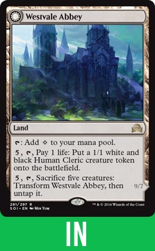 The utility lands also tested well. The ones that we played had a strong impact on the game, and they gave us the ability to personalize our experience a bit. Things like slowing down the game with Maze of Ith, or giving Tasigur haste really adds accents to the gameplay. The other great thing is that we’ve purposely been sparse on the land destruction options, so these utility lands typically stay in play for the whole game. I’m happy with the selection of lands in this section, but I did add one to lineup. I added a Westvale Abbey which should make for some interesting situations, and give more token support.