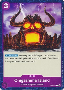 Give up to 1 of your opponent's Characters -2 cost during this turn." We've seen Animal Kingdom Pirates before in purple (and some in blue), but what's new here is the inclusion of this type within black. King offers versatility, with support from cards like Onigashima, King, and Kaido from Starter Deck 4.