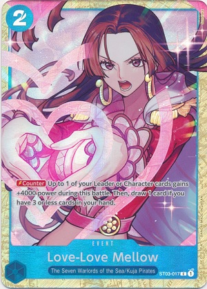Players have a multitude of options to build a Mono-Blue deck with Boa, such as Amazon Lily/Kuja Pirates tribal theme or even just a deck that draws an insane amount of cards with things like Sanji's Pilaf and Love-Love Mellow to try and stall until your bigger characters come into play.