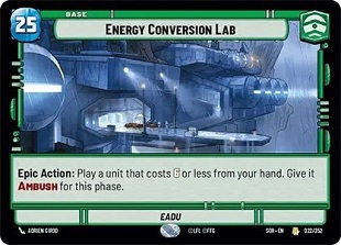 Ambush - Ambush is similar to "Haste" in Magic: The Gathering, or "Rush" in the One Piece TCG... However, there are a few important differences. A Unit with Ambush only comes into play ready if your opponent has a unit that is able to be attacked in play. Units with Ambush can also ONLY attack units; they cannot attack bases the turn they are played.