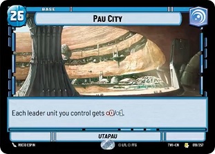 Let's say our Leader is Darth Vader - Dark Lord of the Sith and we want to use the base Pau City. This means we would be inclined to use only cards with Cunning, Aggression and Villainous aspects. HOWEVER, you do have the option to play with cards outside of the base and leaders aspect at the cost of an extra 2 resources.