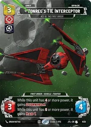 We'll go over one for each Aspect including Aggression for Major Vonreg. If you are thinking about building this leader, I'd play U-Wing Lander, Kijimi Patrollers, Vonreg's Tie Interceptor - Ace of the First Order, or Death Space Skirmisher.
