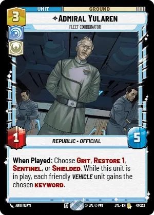 For reference, Xwing Token. This leader has a group hug feel to it if you were to play him in the Twin Suns format, however... we aren't here to discuss Twin Suns rather the leader himself. Lets talk about some excellent units that work well with this leader coming out of Jump to Lightspeed.
