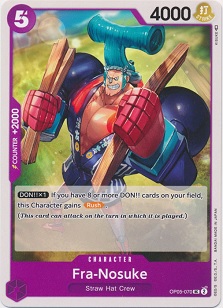 So, this character has both the Strawhat and Big Mom types with along with being an absolute units worth of value. 7000 power is nothing to gawk at, and with Luffy leader already turning two DON!! Active when you utilize his ability you essentially pay 3 for this character who also draw you a card on play?