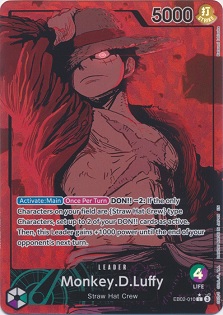 Monkey .D. Luffy is a Green/Purple leader with standard dual colored leader stats of 5000 power and 4 life and has the following leader ability "[Activate: Main][Once Per Turn] DON!! - 2: If the only characters on your field are 'Straw Hat Crew' type characters, Set up to 2 of your DON!! cards as active. Then, this Leader gains +1000 power until the end of your opponent's next turn." So, we've seen a plethora of Monkey .D. Luffy leaders in the past... But this Luffy seems to be hyper focused on his fellow crew mates. Which might leave you thinking "What cards would I even throw together with this leader?"
