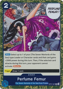 Following up from the wax footprints of Mr.3 we have Mr.1, the slicer and dicer himself from Extra Booster! Mr.1 is a a 5 cost 6000 power character with "If your Leader's type includes "Baroque Works", this Character gains +1000 power for every 2 Events in your trash. [On Play] Draw 2 cards and trash 1 card from your hand.". If his on play wasn't good enough, being able to buff our character by just playing events is excellent value! Two events in the trash make Mr.1 a 7000 power character with zero downside, plus you can pitch an event to his On Play to give him the plus 1000 power! Mr.1 is also synergistic with Mr.3's ability to discard cards from your hand to restand him just in case Mr.1 might need a little boost by discarding an event from hand after passing the turn to your opponent.