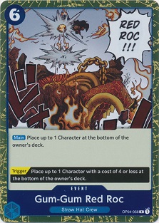 But enough of Baroque Works! What events are good for this leader over all? We should be utilizing key removal pieces such as Gum-Gum Red Roc and Gravity Blade Raging Tiger.
